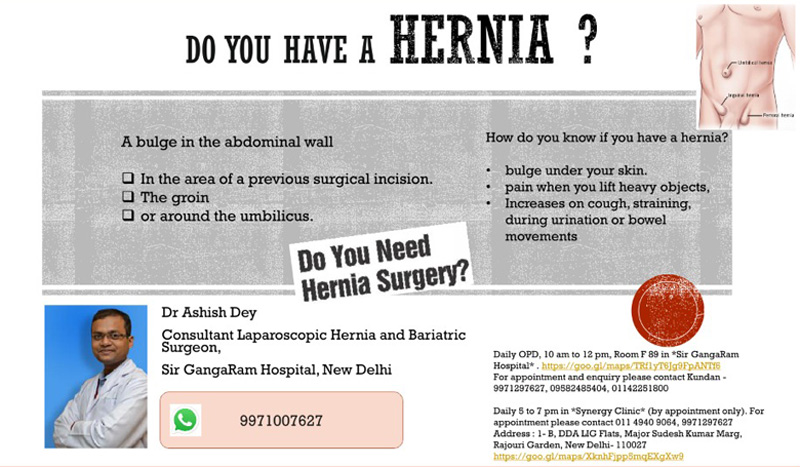 He is currently working in Sir Ganga Ram Hospital which is among the top Laparoscopic Hernia and Obesity Surgery Centers in India. His expertise in Hernia surgery stems from his keen interest in these surgeries. He has published many papers in International and National Journals of repute. He has presented papers in many Conferences all over the country. His keen interest and expertise in Hernia surgeries also helps to mentor Residents and Young Surgeons all over the country. His other areas of interest is in minimal access colorectal surgeries. Apart from these specialized surgeries, the other most commonly performed surgeries are Gall bladder and Hiatal hernia surgeries in which he has had almost a decade of laparoscopic experience. If you are in search of a specialist Hernia surgeon in Delhi, NCR for a safe and successful obesity treatment then you are at the right place.